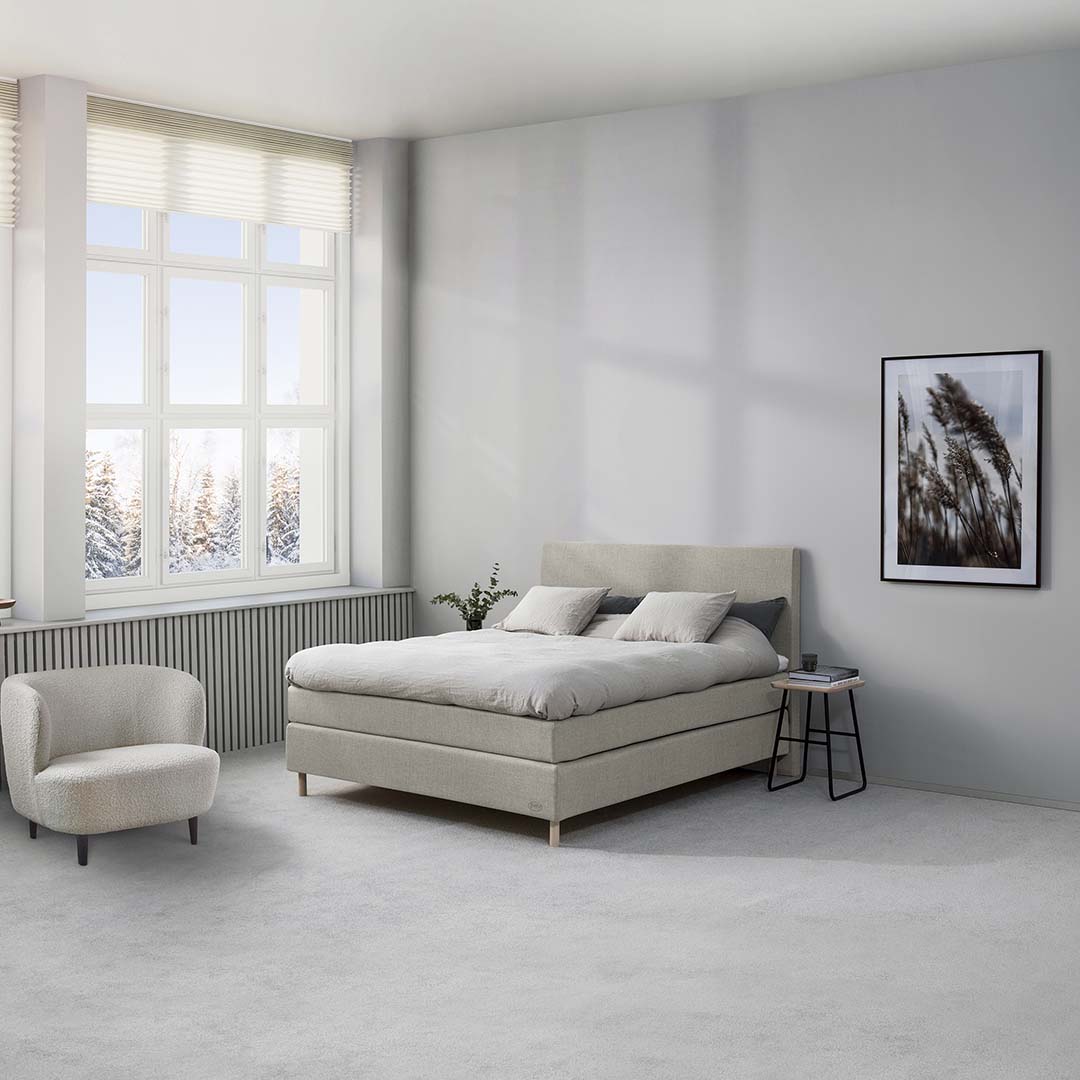 Sängpaket i stilren skandinavisk design med mellandel i 7-zonspocket. Inklusive bäddmadrass, sänggavel och ben.