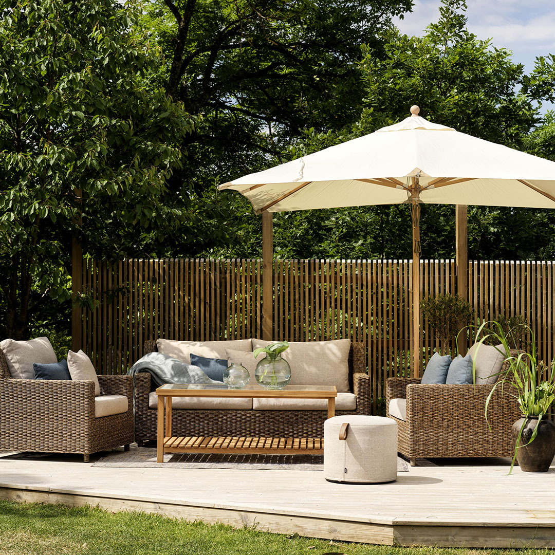 För dig med större uteplats behöver du inte välja, skapa olika rum med plats för såväl solstolar och avslappning samt middagsbord och sköna loungegrupper.