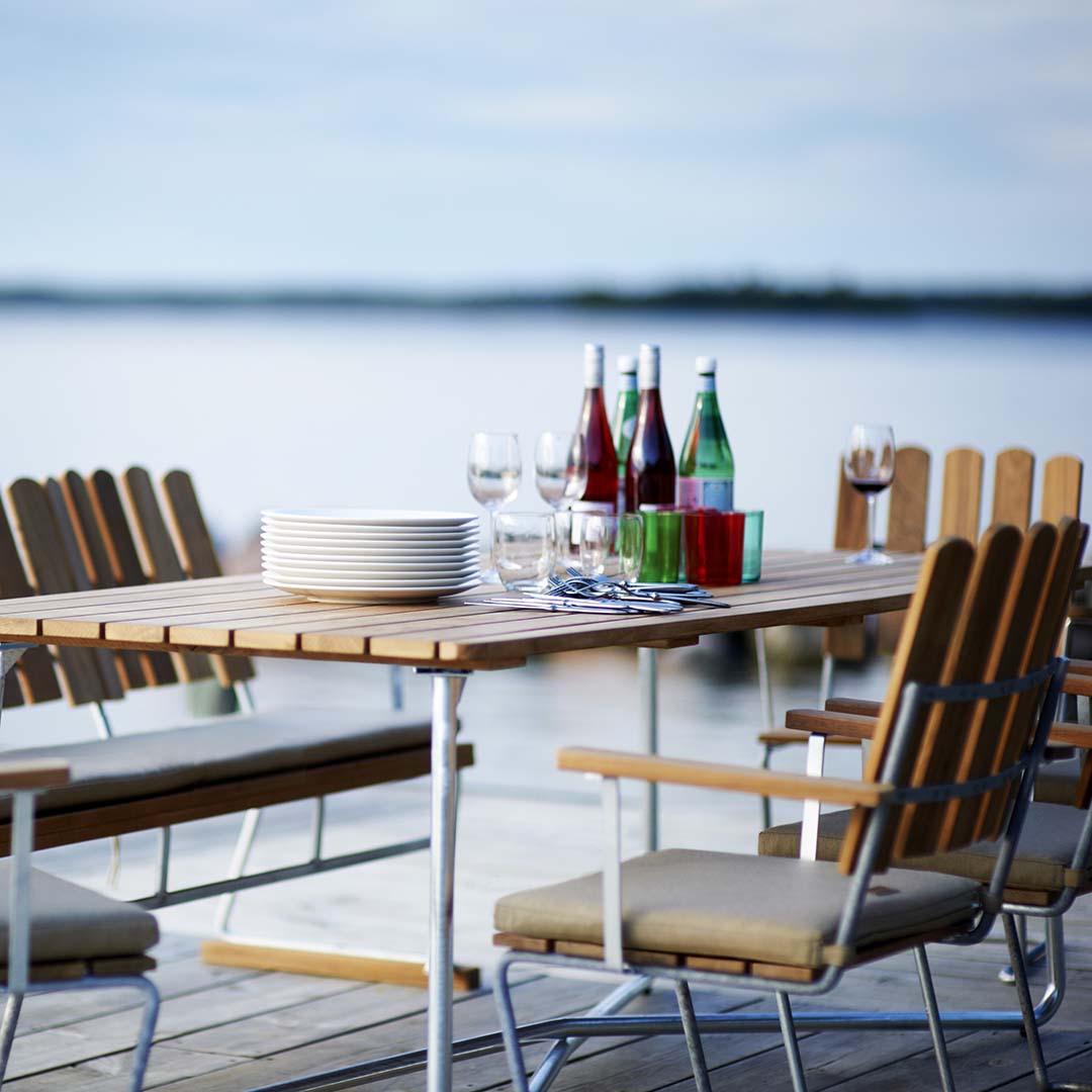 *Teak är en klassiker i svenska trädgårdar där graden av underhåll kan anpassas efter eget engagemang. Teak i sig behöver inget underhåll och om man inte oljar det får träet en vacker gråaktig patina med tiden.