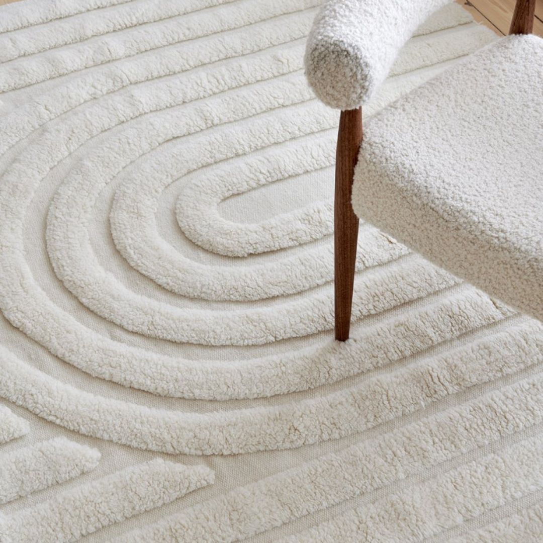 Att placera en matta under matbordet skapar värme och ger känsla av ett rum i rummet. En stor ullmatta kan passa bra, då ull är tåligt och naturligt smutsavvisande. Har man småbarn kan det såklart vara bra att täcka delar av golvet (tips! golvskydd för t.ex. skrivbordet är perfekt att placera under barnstolen) för att skydda ullmattan. Bomullsmattor fungerar också bra, men viskos som är ett känsligt material kanske inte passar sig just som matbordsmatta.